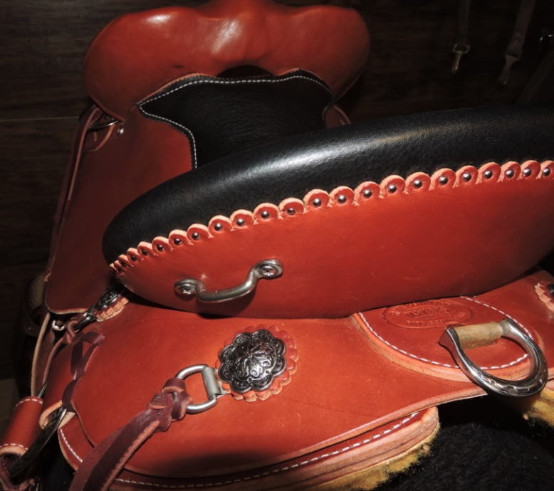 For the TrailMeister saddle I chose to incorporate heavy-duty drop type rigging attaches to the saddle’s tree with nylon latigos to reduce the bulk under the rider’s thighs. Nylon latigos offer many advantages over “traditional” leather. Nylon doesn’t rot, stretch, or get slippery when wet. While it may not be as “pretty” as leather, I opted for function first with the saddle that bears my name.