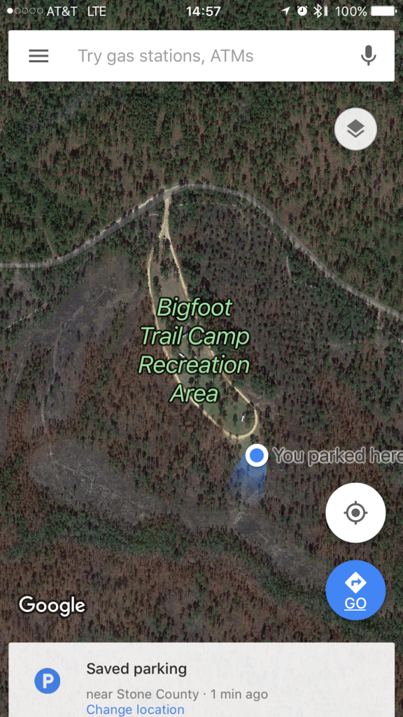 Click the icon for directions in google.From Interstate 10 take Hwy 49 north to Saucier, right onto Hwy 67 south go 5 miles to a 4 way stop, turn north onto Airey Tower Rd, go 4 miles to Forest rd 440. Big National Forest sign on left Big Foot Horse Camp, turn right onto dirt road go 1 mile turn right into horse camp.