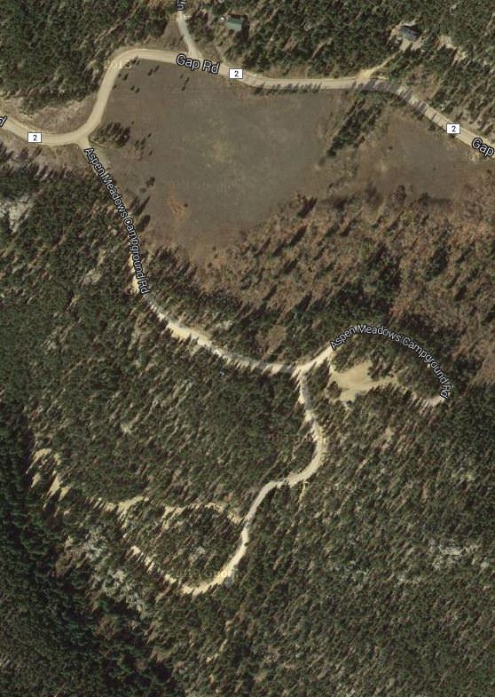 Click the icon for directions in google.Follow I-70 west to exit 265 for highway 58. Take highway 58 west to highway 93. (highway 58 turns to highway 6 at this stop light). Follow highway 6 west to highway 119. Go north on 119 through Blackhawk to Gap Road (approximately 11 miles). Turn right on Gap Road to access Reverend’s Ridge and Aspen Meadow campgrounds.