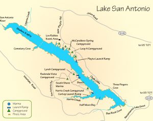 Los Robles Horse Camp, North shore of Lake San Antonio. Part of Monterey County Parks system. Dedicated equestrian trails. Call ahead to make sure the facility is open. Under volunteer management. Bathrooms, showers, water. Some hookups. Large arena and round pen. Pipe corrals. Boating is allowed on the lake. No dogs on the trails. Best in spring, Hot and dry in the summer.