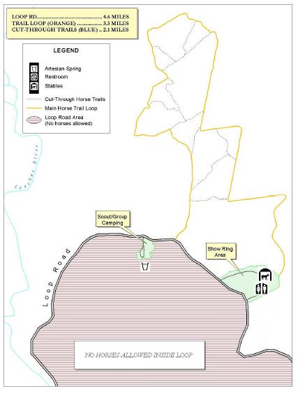 Lee State Park offers over ten miles of horse and mule friendly trails within one large loop with multiple cut throughs.