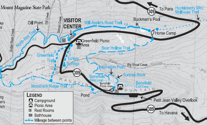 The Mount Magazine Horse camp offers easy access to the 38 miles of equine friendly trails in the Huckleberry Trail system.