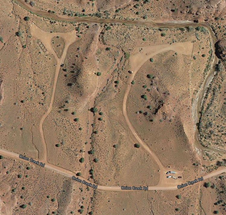 Click the icon for directions in google.The Upper Onion Creek Group Campsites are located approximately 22 miles east of Moab on Utah Highway 128. Between mileposts 21 and 22, turn south onto the Onion Creek Road (which is indicated with a sign). Drive 0.6 miles on this graded road to a left turn into Group Site A; Group Site B is located 0.1 mile further. Turn left into Group Site B 0.7 miles from Utah Highway 128.