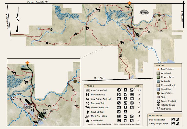 About 7 miles of meandering horse friendly trails are available to equestrians from the Geauga county area in this lovely county park.